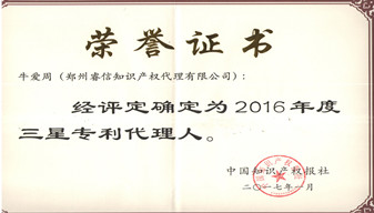 2016年3月公司陳浩總經(jīng)理被評(píng)為“2016年度四星專利代理人”。 -