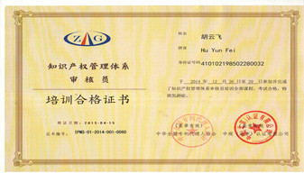 2015年2015年公司代理人獲得知識(shí)產(chǎn)權(quán)管理體系兼職審核員資格。