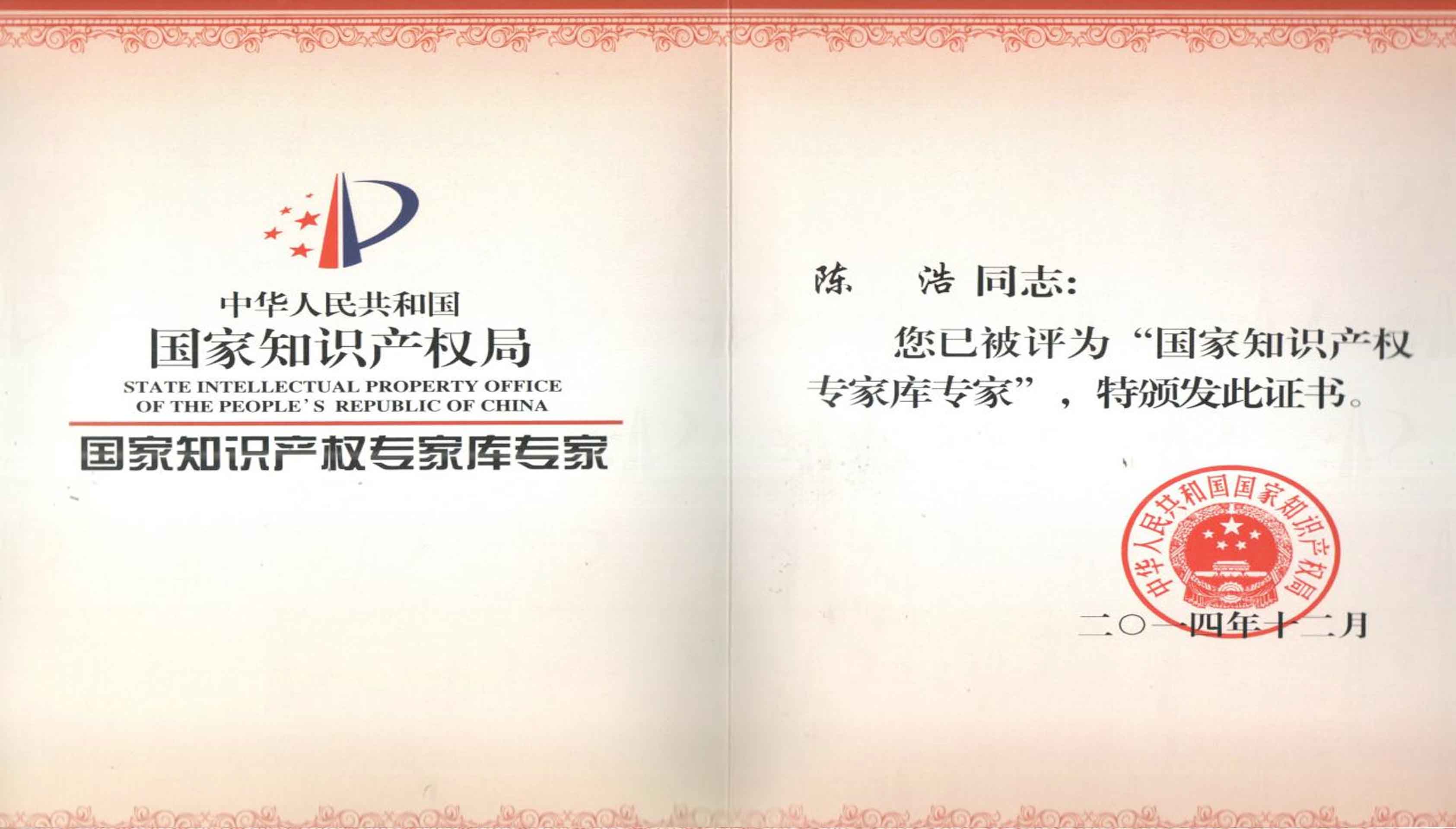 2014年12月公司資深代理人被評(píng)為“國家知識(shí)產(chǎn)權(quán)專家?guī)鞂<摇薄?