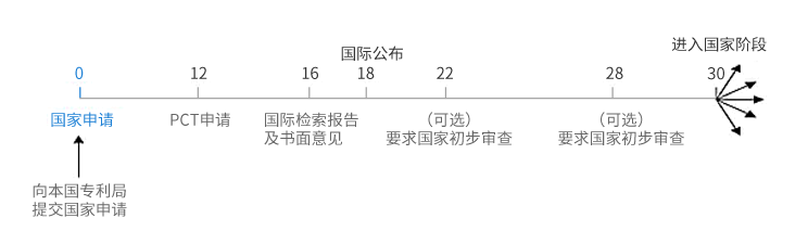 對(duì)中國申請(qǐng)人來說,申請(qǐng)人可以直接向中國國家知識(shí)產(chǎn)權(quán)局(受理局)提交一份PCT申請(qǐng),要求優(yōu)先權(quán)的,應(yīng)在自優(yōu)先權(quán)日起十二個(gè)月內(nèi)提出。由受理局確定的國際申請(qǐng)日,在PCT的所有成員國中自國際申請(qǐng)日起具有正規(guī)國家申請(qǐng)的效力。申請(qǐng)人可以自優(yōu)先權(quán)日起三十個(gè)月內(nèi)向欲獲得專利的國家專利局提交申請(qǐng)文件的譯文,并繳納相應(yīng)的費(fèi)用,根據(jù)具體國家的專利審查制度進(jìn)行審查并且獲得授權(quán)。